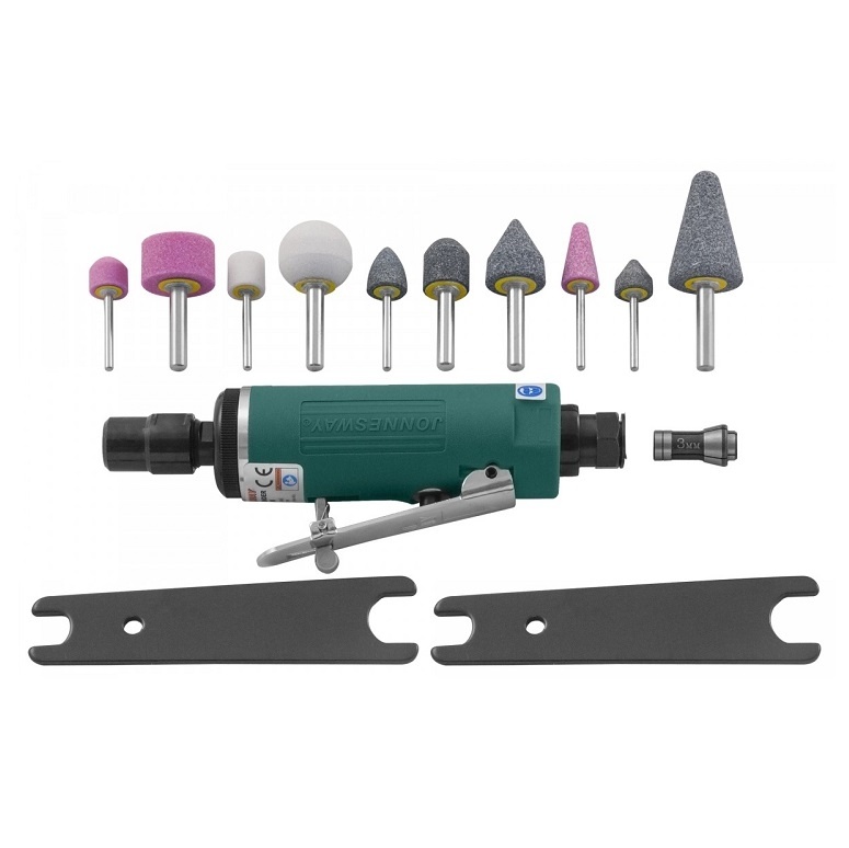 Пневматическая бормашинка Jonnesway предназначена для зачистки и шлифования сварных швов, удаления ржавчины, выполнения работ по обработке стали, чугуна, цветных металлов и других материалов в зависимости от установленного инструмента. При эксплуатации пневматического инструмента рабочее место должно быть оборудовано воздушной магистралью с давлением воздуха не ниже 6 атм. или компрессором такой же мощности и соответствующей производительностью. Работы должны проводиться персоналом, имеющим соответствующую квалификацию, знакомым с правилами ТБ, условиями эксплуатации и навыками работы с пневмомеханическим инструментом.