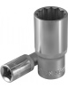 Головка торцевая глубокая 12-гранная 1/2"DR. Торцевая головка выполнена из хромованадиевой стали, имеет накатку и полуматовое хромоникелевое покрытие. Изделие изготовлено по стандарту DIN 3124, полностью соответствует требованиям ГОСТа 25604-83.