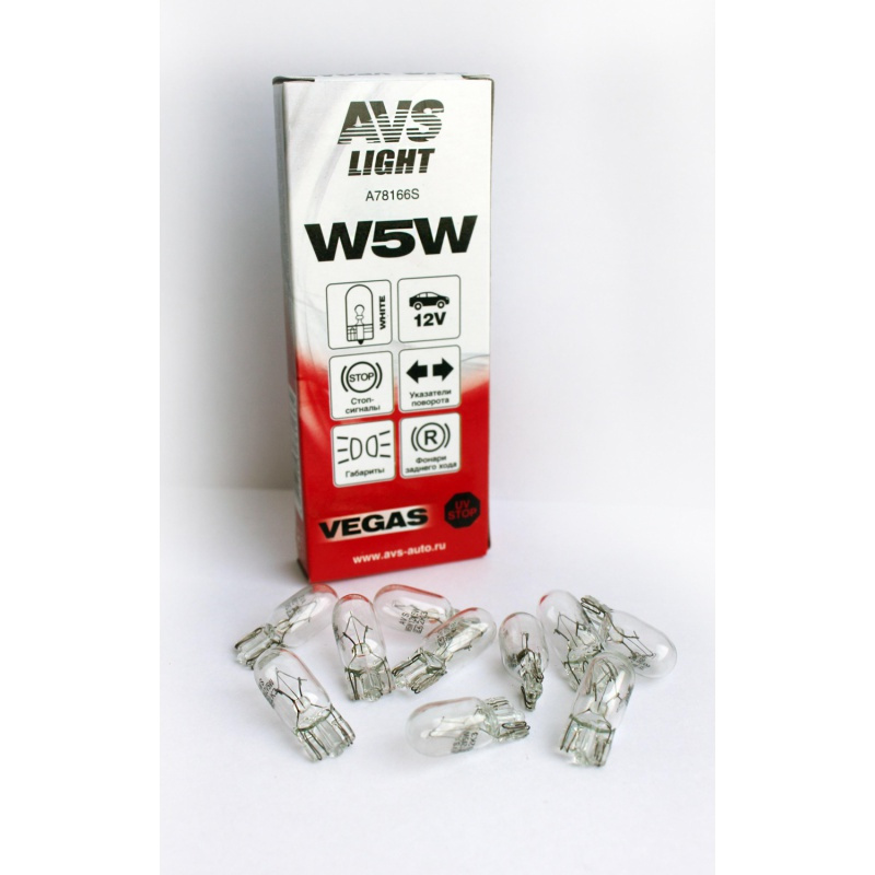 Лампочка AVS Vegas 12V. W5W (W2,1x9,5d) BOX-10 шт.