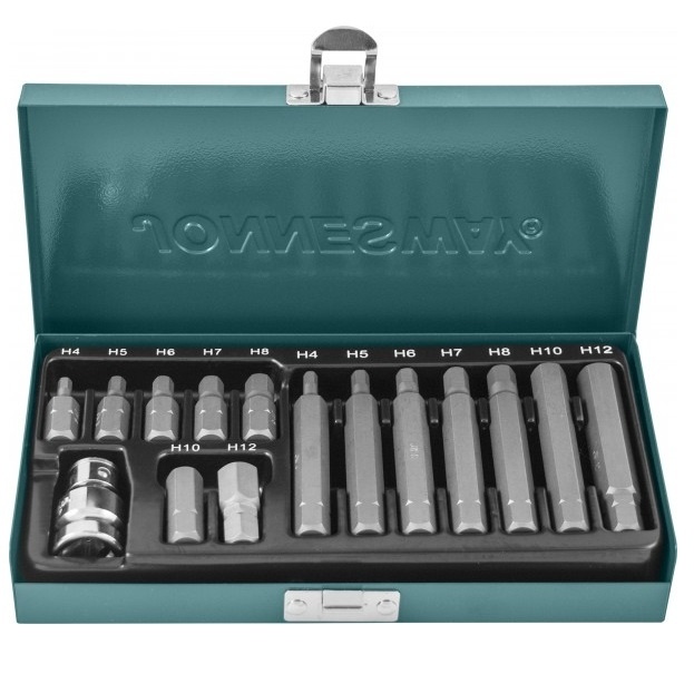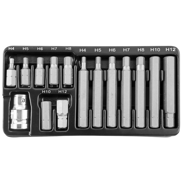 Применяется в машиностроении при работе с резьбовыми деталями с внутренними рабочими профилями. Набор вставок-бит "S29H4115S" предназначен для проведения ремонтных работ в сочетании с ручными приводами с крепежом, имеющим внутренний рабочий профиль HEX (шестигранник).