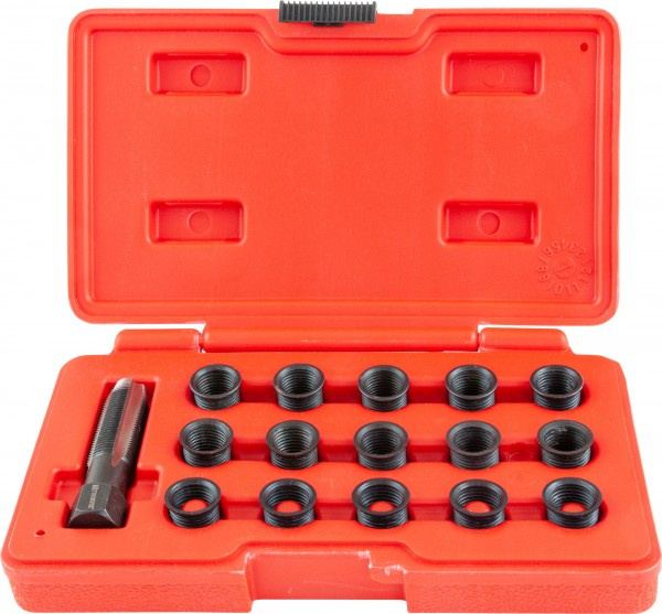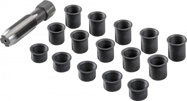 Набор применяется для ремонта разрушенной резьбы свечных отверстий алюминиевых головок блоков цилиндров бензиновых ДВС различных транспортных средств и оборудования.