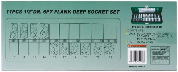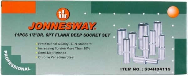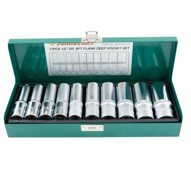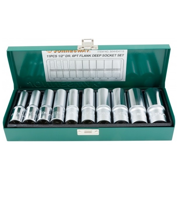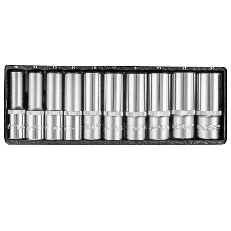 Головки торцевые глубокие 1/2"DR, 9 шт.: 10, 11, 13, 14, 15, 17, 19, 21, 22, 24 мм.;