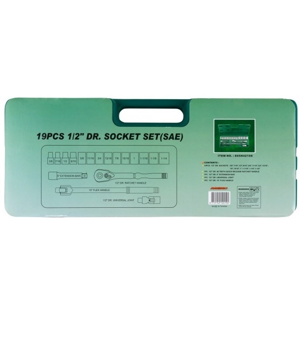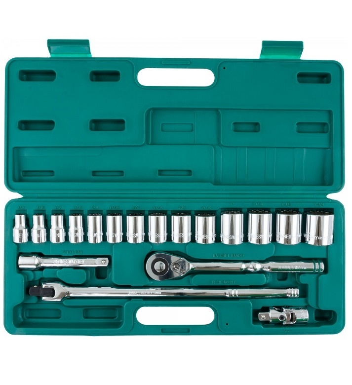 Головки торцевые 14 шт.: 3/8", 7/16", 1/2", 9/16", 5/8", 11/16", 3/4", 13/16”, 7/8”, 15/16”, 1”, 1-1/16”, 1-1/8”, 1-1/4”;