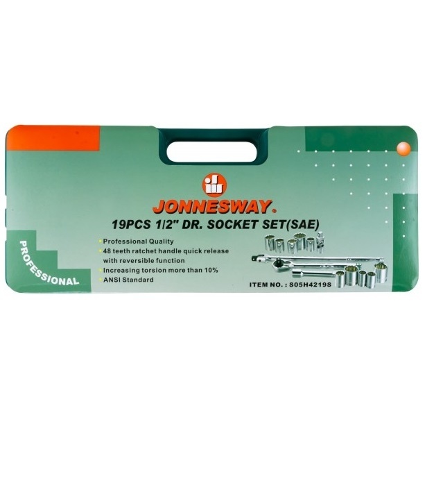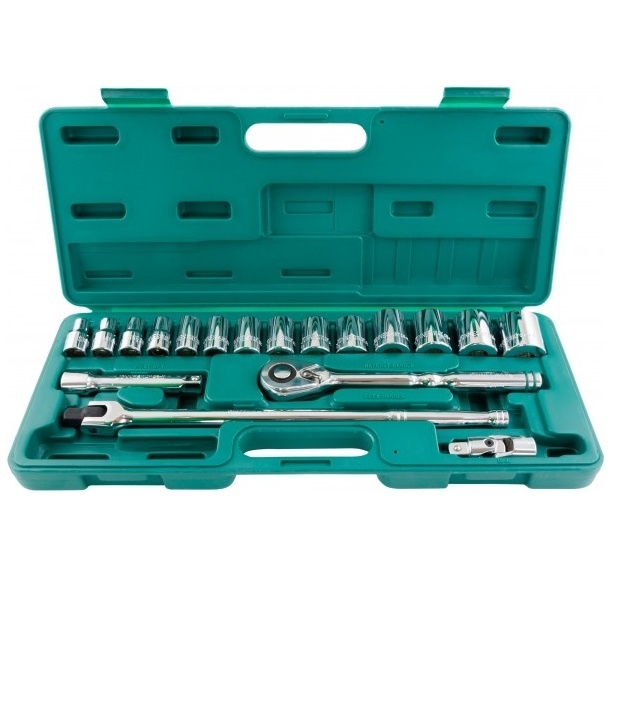 Торцевые головки набора выполнены из хромованадиевой стали, имеют накатку и полуматовое хромоникелевое покрытие.