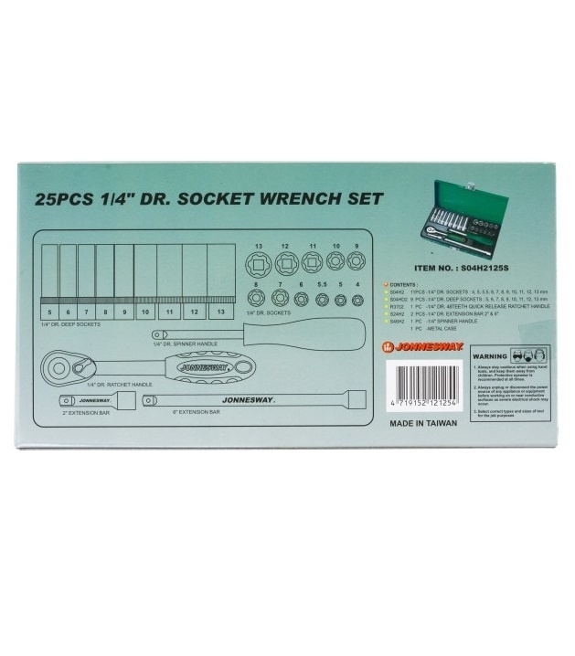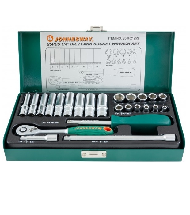 Шестигранный рабочий профиль считается наилучшим с точки зрения приложения максимальных рабочих нагрузок, передаваемых крепежной детали. Система инструмента с присоединительным квадратом 1/4’’DR является основной при работе с внешним рабочим профилем, так как применение этой системы связано, в первую очередь, с обслуживанием изделий точной механики, электроники и бытовой техники, где рабочая зона ограничена и отсутствуют серьезные нагрузки. При производстве работ по обслуживанию автомобильной техники система незаменима для ремонта и установки малых агрегатов и навесного оборудования двигателей благодаря небольшим размерам. Торцевые головки выполнены из хромованадиевой стали, имеют накатку и полуматовое хромоникелевое покрытие.