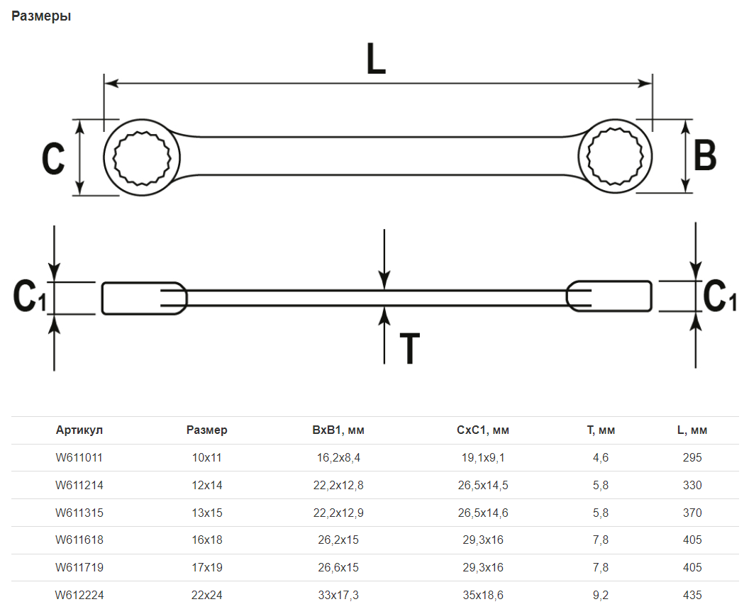 Комплектация: 10х11, 12х14, 13х15, 16х18, 17х19, 22х24 мм.