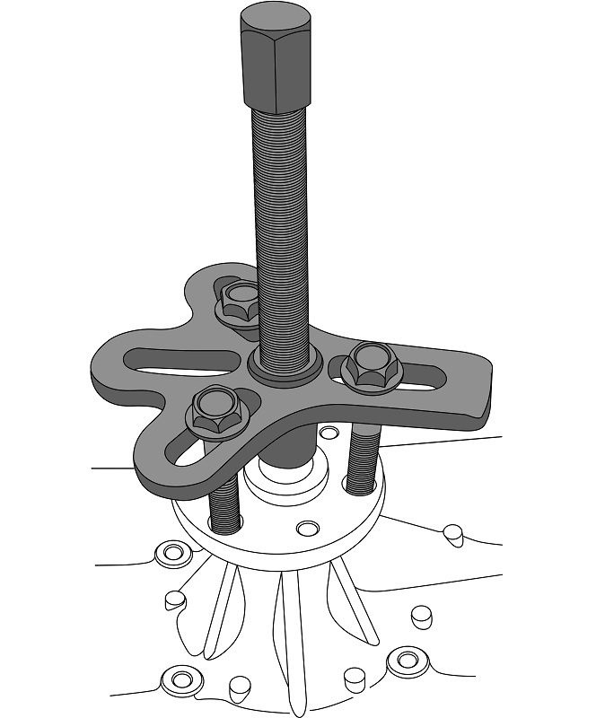 Данный инструмент применяется для обслуживания слабо, или умеренно нагруженных соединений (рулевые колеса, эластичные муфты и т.д.), в случаях, когда в демонтируемой детали имеются отверстия, или отверстия, позволяющие пропустить через них болты с другой стороны.