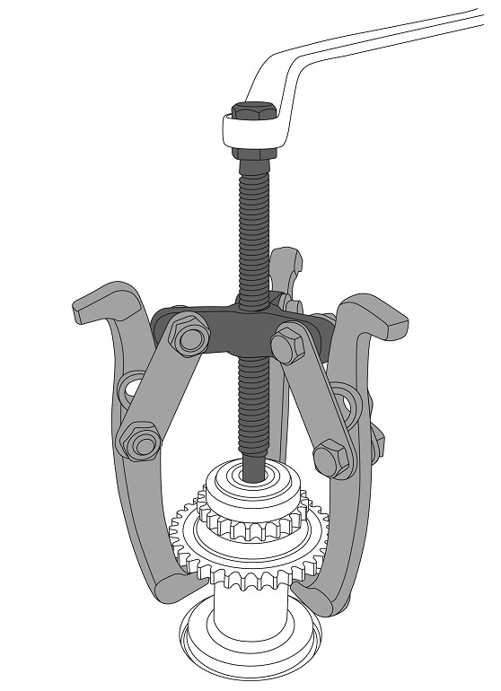 Применяется для демонтажа подшипников, шкивов, шестерен с захватом за внешнюю часть детали и где это необходимо и возможно технологически за внутреннюю, переустановив захваты.