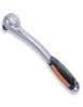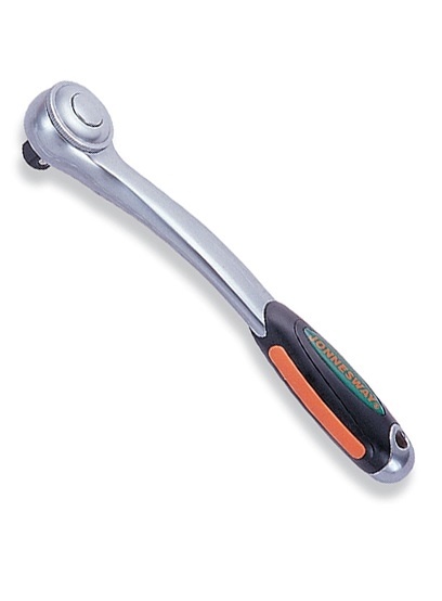 Трещоточная рукоятка с изогнутой ручкой и дисковым переключателем направления вращения обеспечивает очень маленький 5° обратный ход благодаря конструкции храпового механизма. Изогнутая форма ручки позволяет использовать изделие при обслуживании заглубленного крепежа без опаски повреждения руки оператора. Трехкомпонентная резино-полимерная рукоятка обеспечивает надежное удержание инструмента. К особенностям эксплуатации можно отнести необходимость достаточно частого обслуживания, чистых рук пользователя и свободной от загрязнений рабочей зоны.