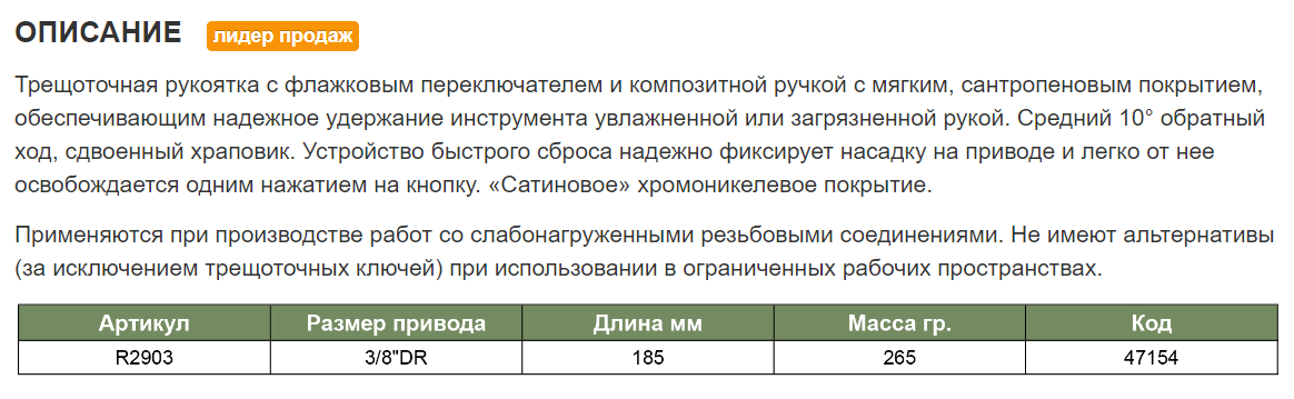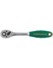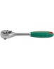 Трещоточная рукоятка (трещотка) Jonnesway R2903 с флажковым переключателем и композитной ручкой с мягким, сантропеновым покрытием, обеспечивающим надежное удержание инструмента увлажненной или загрязненной рукой. Средний 10 градусный обратный ход, сдвоенный храповик. Устройство быстрого сброса надежно фиксирует насадку на приводе и легко от нее освобождается одним нажатием на кнопку. «Сатиновое» хромоникелевое покрытие.